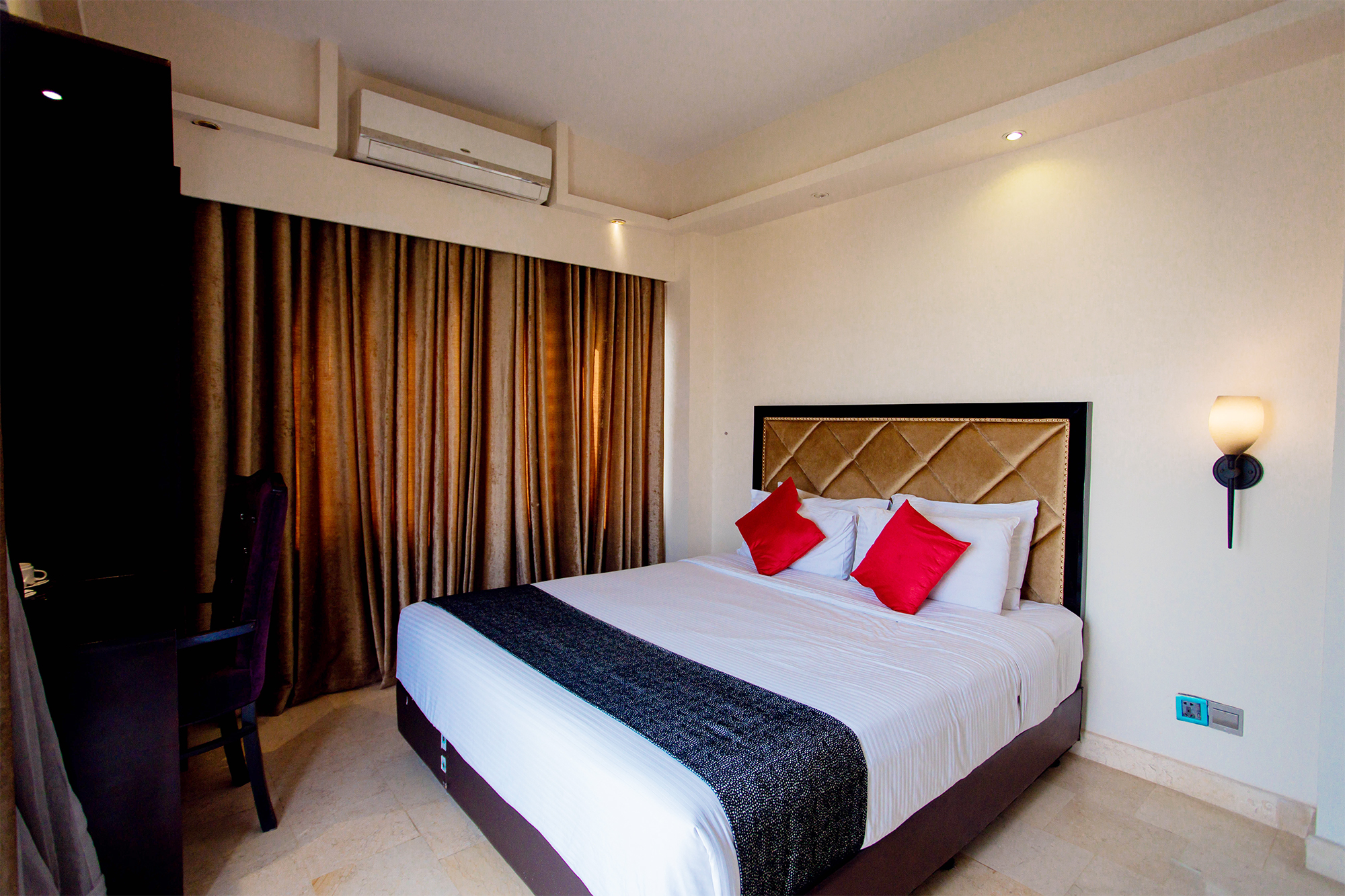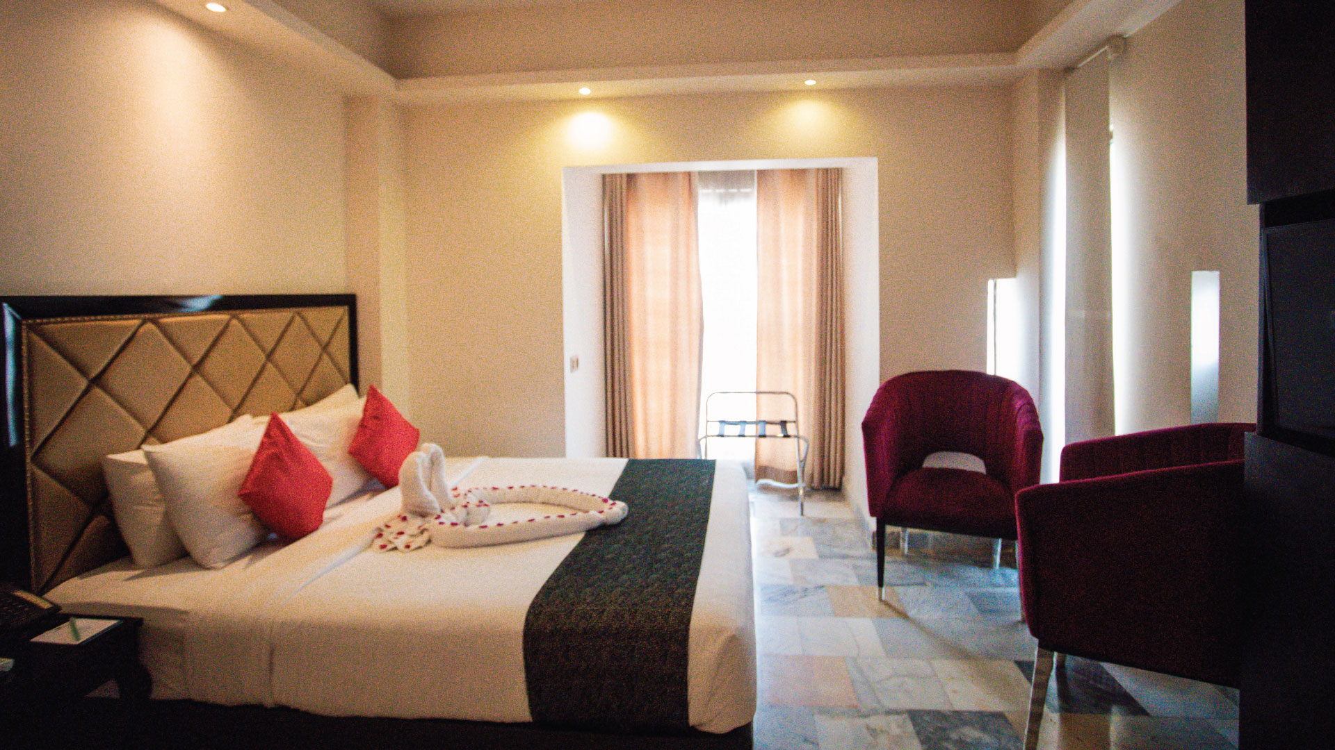 Our distinctive 220 square feet’s fully air-conditioned Deluxe Room is decorated with a King size bed, LED TV in each room, Iron with ironing board, Electronic safety locker, and minibar. Our guests can enjoy free wireless internet facility. We present required amenities and value-added services which will enrich and uplift the experience of guests’ stay.