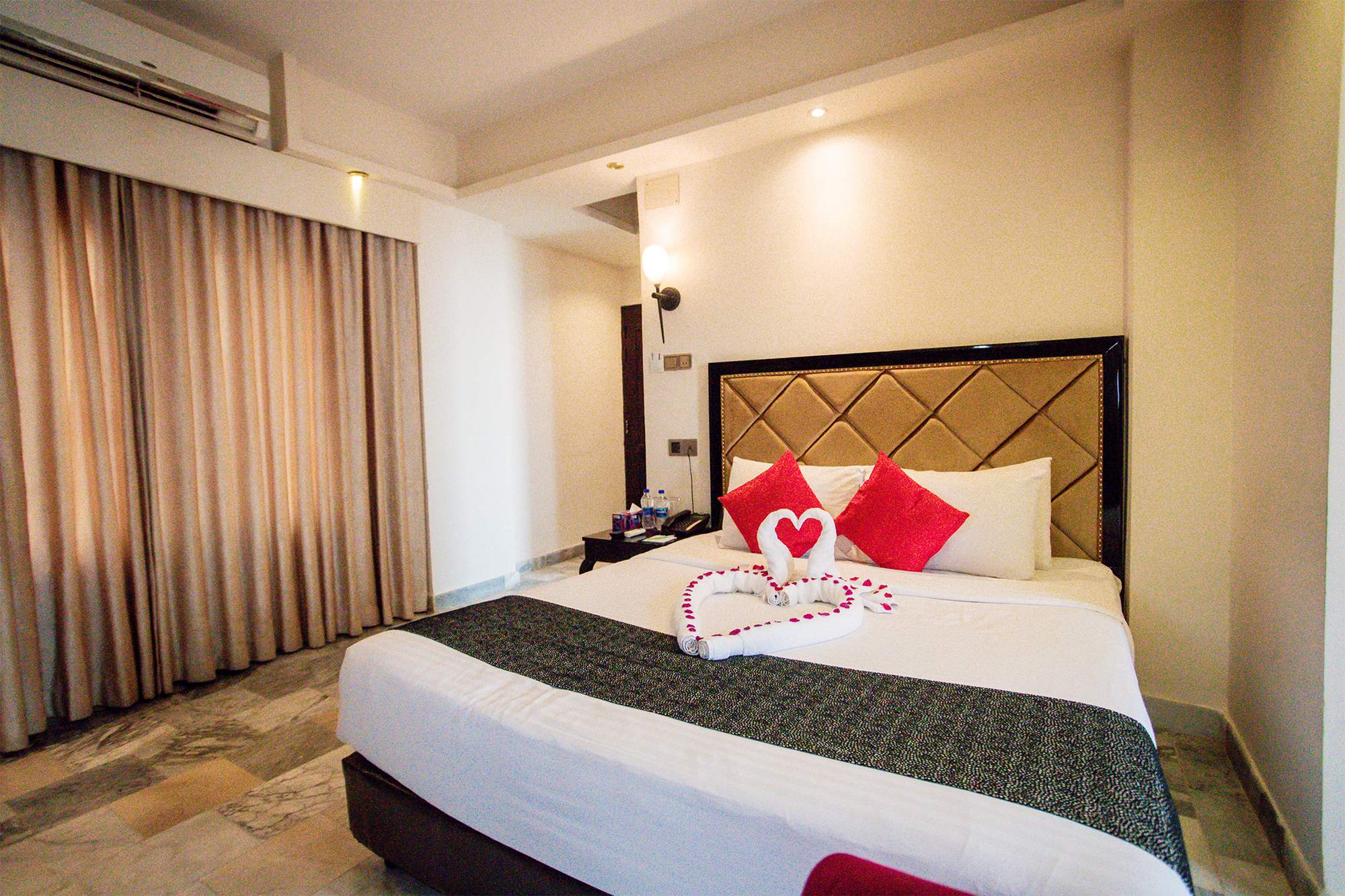 Our distinctive 300 square feet’s fully air-conditioned Premium Deluxe Room is decorated with a King size bed, LED TV in each room, Iron with ironing board, Electronic safety locker, and minibar. Our guests can enjoy free wireless internet facility. We present required amenities and value-added services which will enrich and uplift the experience of guests’ stay.